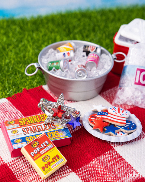 Two stacked star motifs create a dazzling patriotic sparkle atop the finger. A vibrant red and blue gem star shimmer together, with the red star haloed with dainty white rhinestones, finishing off the look with added dimension and sparkle. Features a stretchy band for a flexible fit. Order Date: May 29, 2025