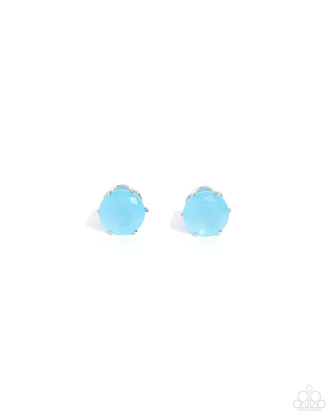 An oversized blue cubic zirconia is nestled inside a pronged silver fitting, creating a timeless statement piece. Earring attaches to a standard post fitting. Order Date: March 2, 2025.