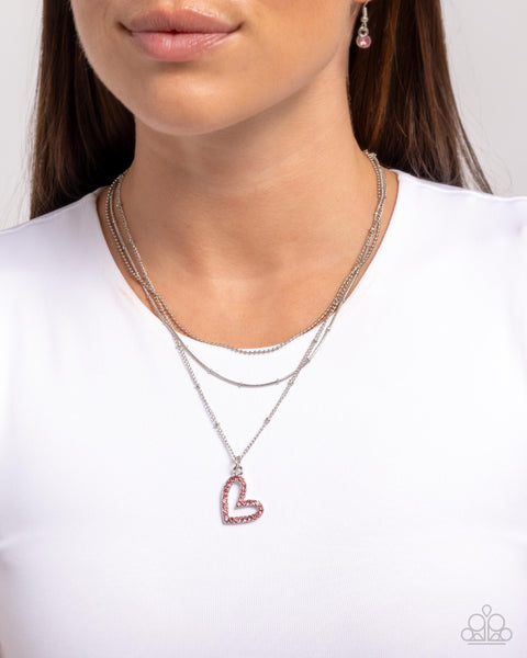 A mismatched trio of satellite snake, dainty satellite, and dainty ball chains layer and cascade below the neckline. A tilted silver heart embellished in rose rhinestones glides along the lowermost chain for a heartfelt finish. Features an adjustable clasp closure. Order Date: January 22, 2025